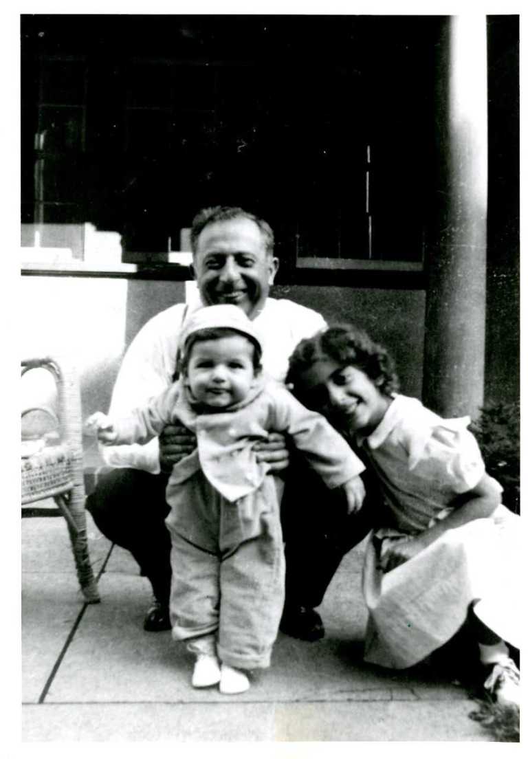 This 1948 photograph of Rabbi Olan with son David and daughter Frances was taken in front of their Worcester, Massachusetts home.