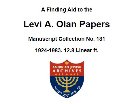 The Jacob Rader Marcus Center of the American Jewish Archives, Cincinnati, Ohio, is the official repository of Rabbi Olan’s papers. A description of the collection may be accessed through this link. (#24, originally posted June …