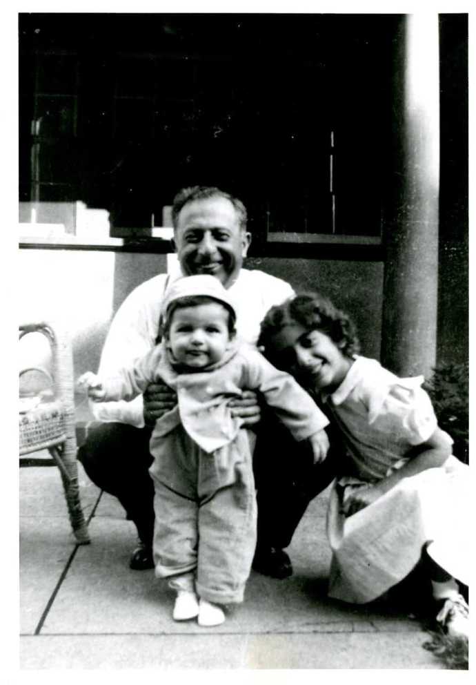 This 1948 photograph of Rabbi Olan with son David and daughter Frances was taken in front of their Worcester, Massachusetts home. Image courtesy of Elizabeth Hirsch. (#88)